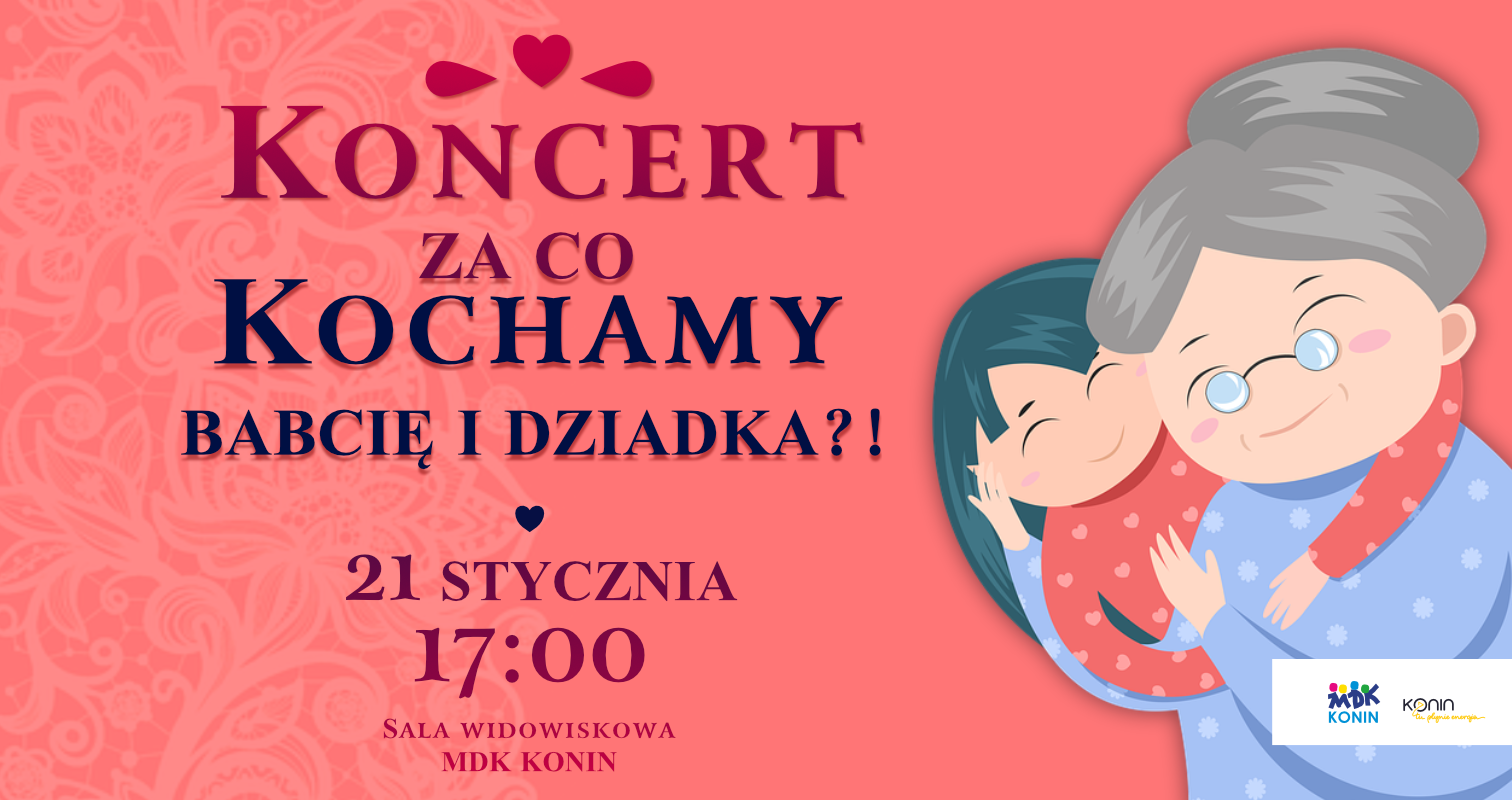 Dlatego zapraszamy serdecznie 21 stycznia o godz. 17 na koncert "Za co Kochamy Babcię i Dziadka?!" w sali widowiskowej MDK. W trakcie wystąpią młodzi piosenkarze, a także tancerze z Flowing Spirals.