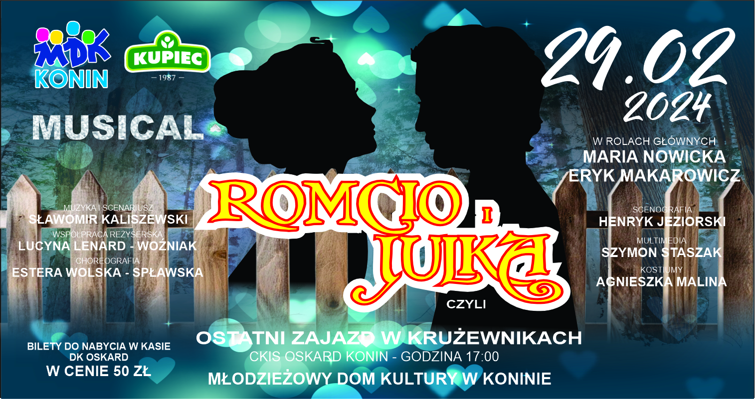 Młodzieżowy Dom Kultury w Koninie ponownie zaprasza na widowisko ,,Romcio i Julka czyli ostatni zajazd w Krużewnikach”. Muzyczny spektakl będzie można obejrzeć 29 lutego o godz. 17.00 w DK Oskard.