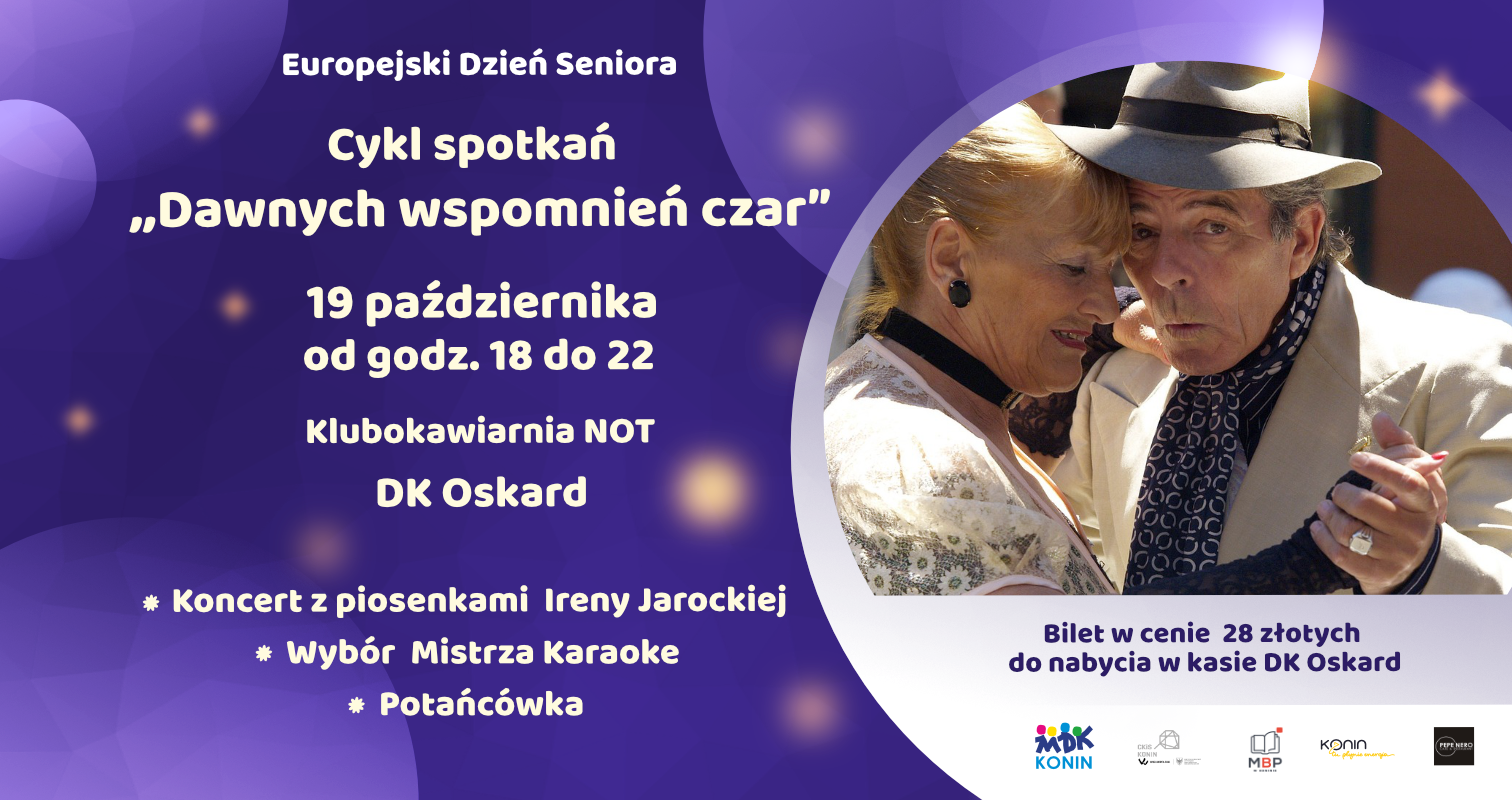 Lubicie śpiewać, tańczyć? To wydarzenie jest dla Was! W przeddzień Europejskiego Dnia Seniora zapraszamy do Klubokawiarni NOT w Domu Kultury Oskard na pierwsze wydarzenie z cyklu „Dawnych wspomnień czar…”. Zapraszamy na koncert, karaoke i potańcówkę w jednym!