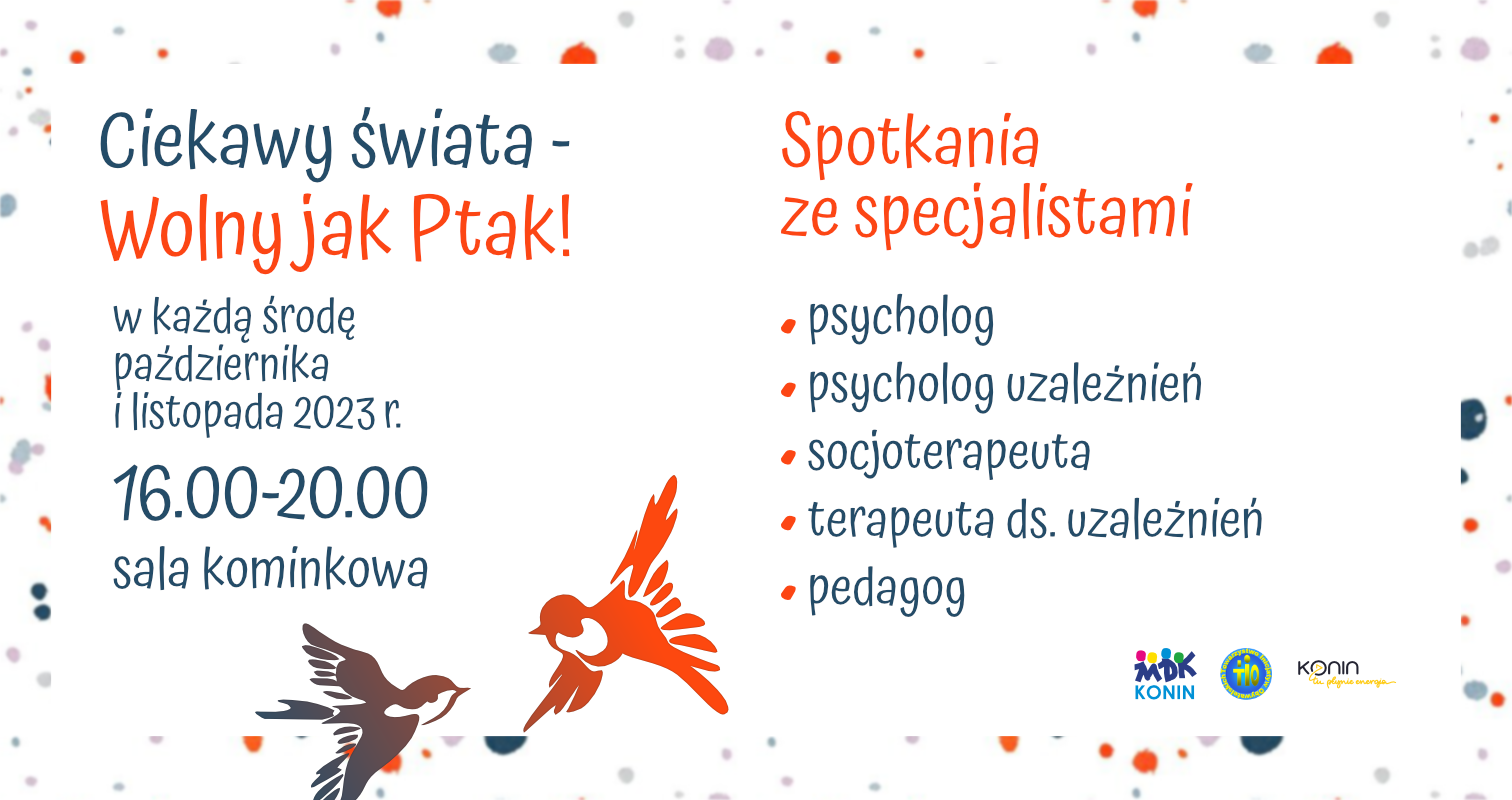 W trosce o wychowanie Waszych Dzieci , szczęśliwe dzieciństwo i przeciwdziałanie zagrożeniom razem z Towarzytwem Inicjatyw Obywatelskich proponujemy spotkania ze specjalistami , które odbywać się będą w MDK w każdą środę, w czasie od 16.00 do 20.00.