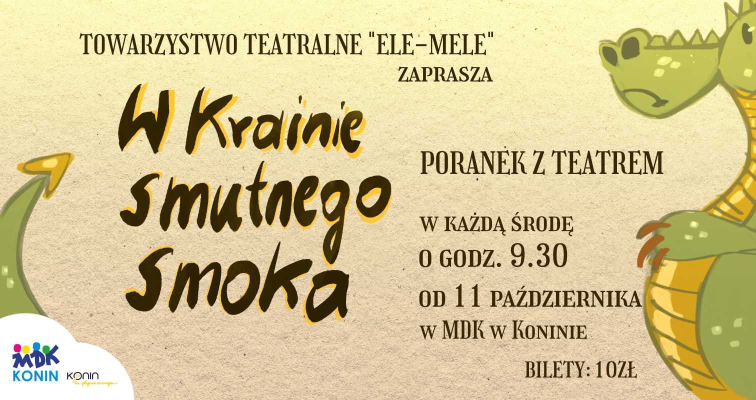 Młodzieżowy Dom Kultury w Koninie zaprasza dzieci w wieku przedszkolnym i wczesnoszkolnym na absolutnie wyjątkowy spektakl teatralny pt.: W krainie Smutnego Smoka.
