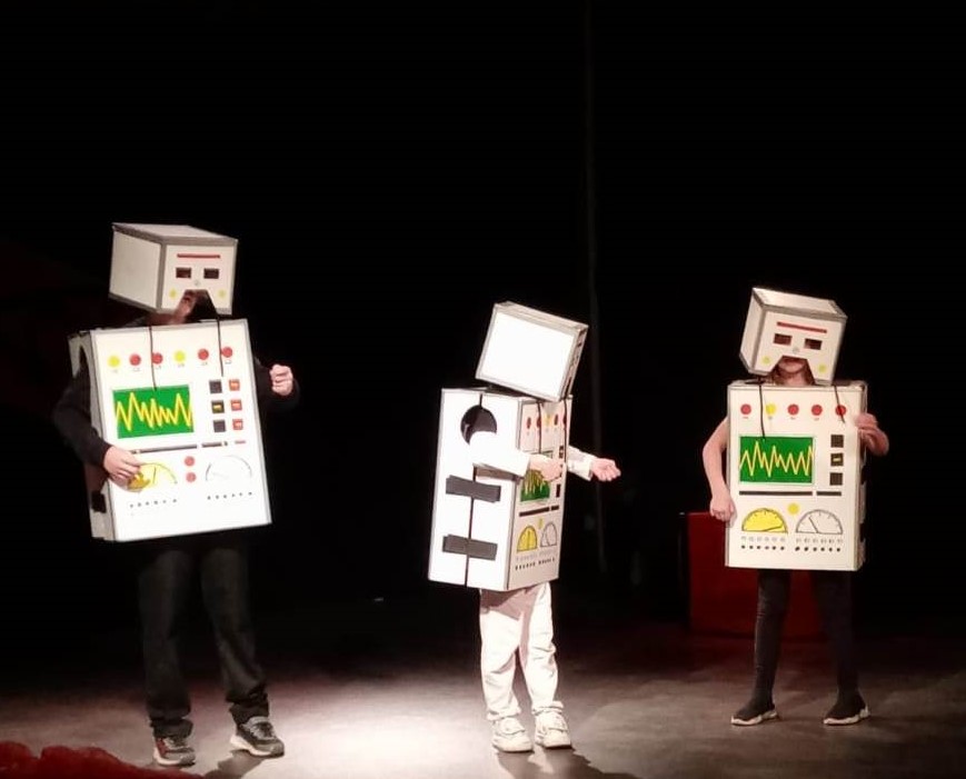 W przypadku Grupy Teatralnej „Mała Trema”, w której uczestniczą dzieci w wieku 7-10 lat, była to prezentacje fragmentów spektaklu „Kosmiczna bajka”. 15 czerwca na MDK-owskiej scenie zjawiły się Roboty z planety XL, a także Królowe z planety Maj i planety Raj wraz ze swoim dworem. Jeśli dopowiemy, że owe planety wiecznie ze sobą konkurowały, a Królowe wprost nienawidziły się, że zarówno Majanie jak i Rajanie wyruszyli równocześnie na podbój planety XL – to robi się z tego prawdziwy sceniczny dramat.