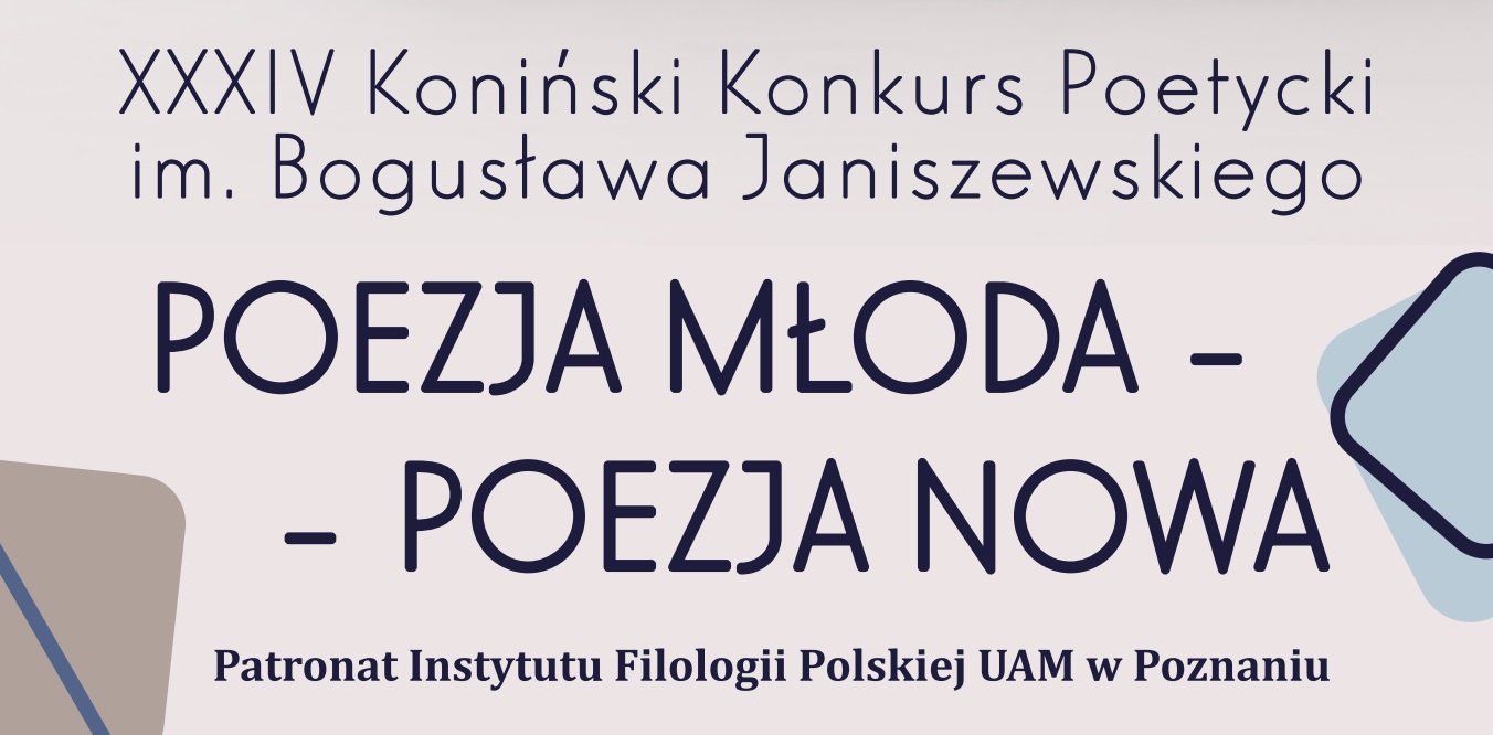 Jeśli masz twórczą duszę artysty, jeśli kochasz poezję, zapraszamy Cię do udziału w XXXIV Międzypowiatowym Konińskim Konkursie Poetyckim im. Bogusława Janiszewskiego „Poezja młoda – poezja nowa”.