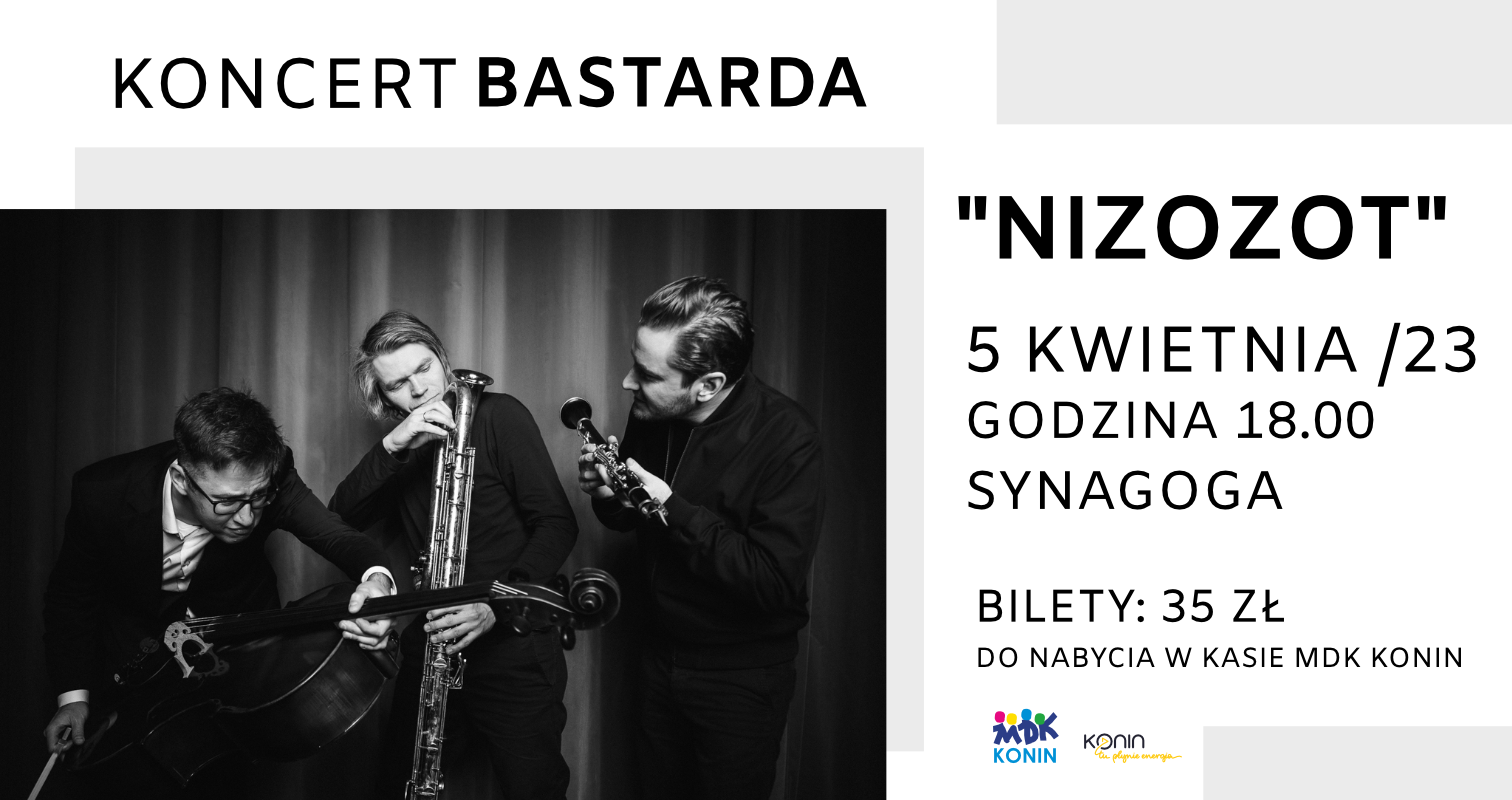 Młodzieżowy Dom Kultury w Koninie zaprasza na koncert zespołu Bastarda Trio. Muzycy zaprezentują w Koninie materiał z najnowszego, trzypłytowego albumu "Nizozot”. Koncert odbędzie się 5 kwietnia o godz. 18 w Synagodze.