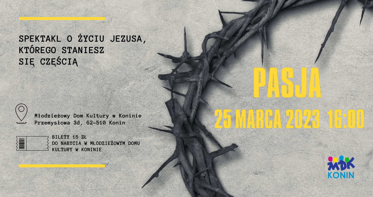 Młodzieżowy Dom Kultury oraz Teatr Sztukmisja zapraszają na niezwykły spektakl ,,Pasja - opowieść o życiu i nauczaniu Jezusa”.