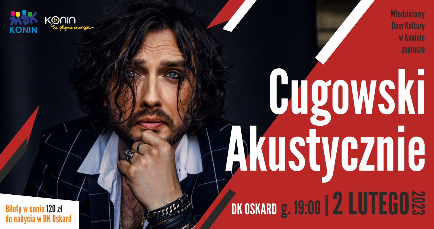 Jeden z najciekawszych męskich głosów w Polsce będziemy mogli posłuchać 2 lutego w DK Oskard. Na koncert Piotra Cugowskiego o godz. 19 zaprasza Młodzieżowy Dom Kultury w Koninie. Bilety w cenie 120 zł już do nabycia w kasie DK Oskard. Sądzimy, że to świetny prezent pod choinkę.