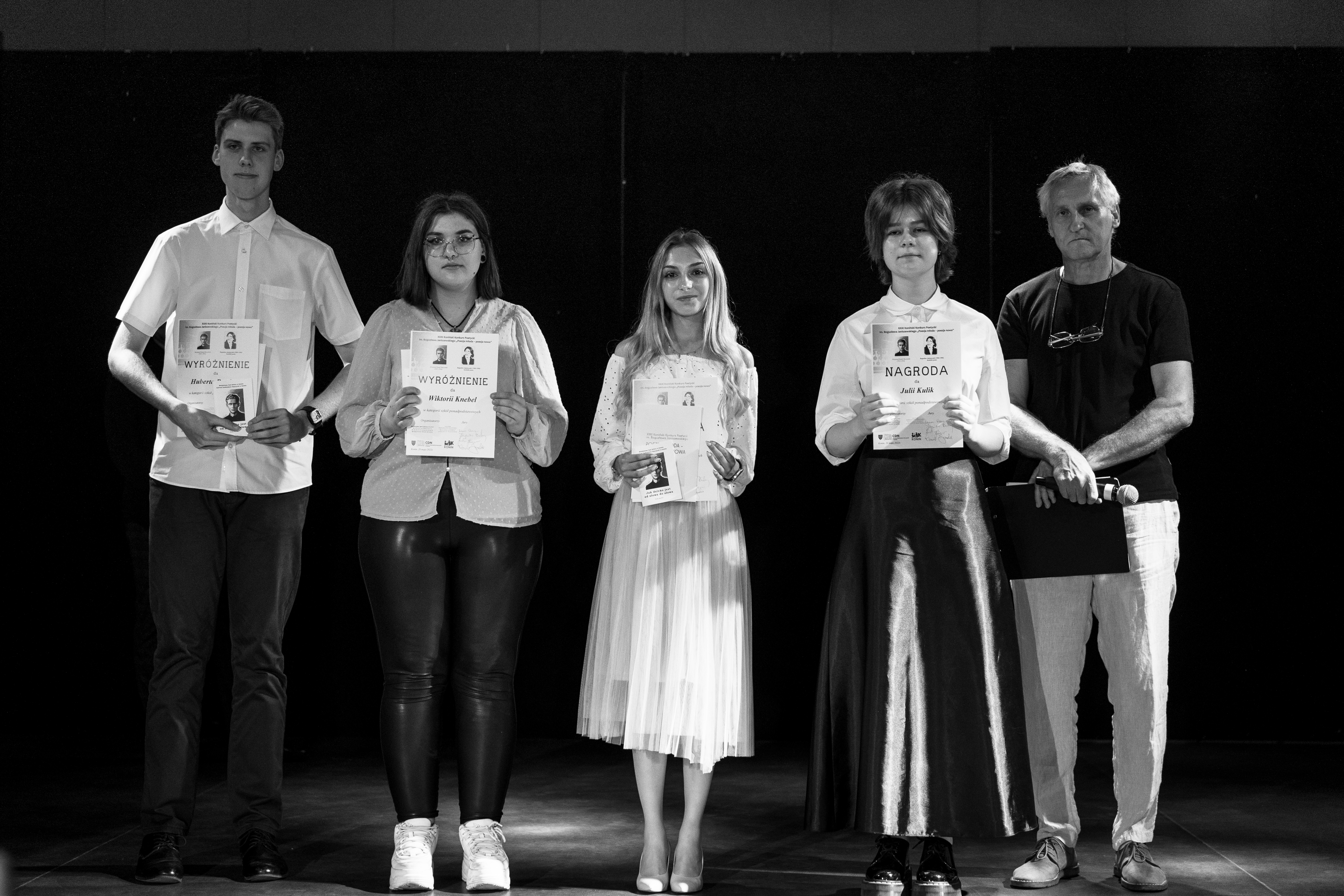 I wreszcie kategoria „najstarsza” – uczniowie szkół ponadpodstawowych. Tutaj Jury przyznało dwie nagrody i trzy wyróżnienia. Nagrody zdobyły: Julia Kulik z III LO w Koninie oraz Olga Błaszczak z LO w Słupcy, zaś wyróżnieni poeci to Wiktoria Knebel z Zespołu Szkół Rolniczych Centrum Kształcenia Praktycznego w Kaczkach Średnich, Julia Faryńska z Zespołu Szkół Ogólnokształcących i Technicznych w Sompolnie i Hubert Przybyła z II LO w Koninie.
