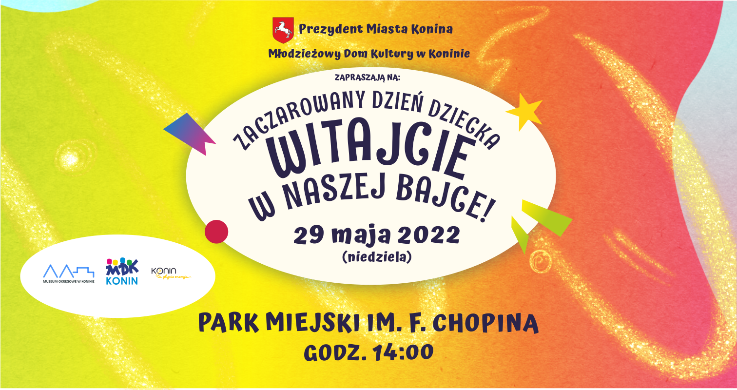 Po dwóch latach przerwy spowodowanej pandemią z impetem wraca Zaczarowany Dzień Dziecka organizowany przez Młodzieżowy Dom Kultury w Koninie. ,,Witajcie w naszej bajce” to tytuł 8 już edycji imprezy !