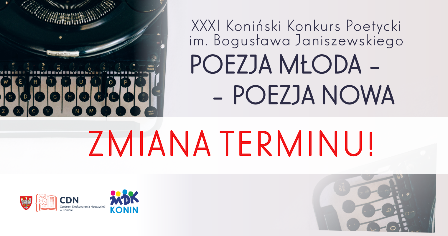 Nieważne, czy masz 7 czy 18 lat – ważne, że masz duszę artysty! Poeci, zapraszamy Was do udziału w XXXI Międzypowiatowym Konińskim Konkursie Poetyckim im. Bogusława Janiszewskiego „Poezja młoda – poezja nowa”.