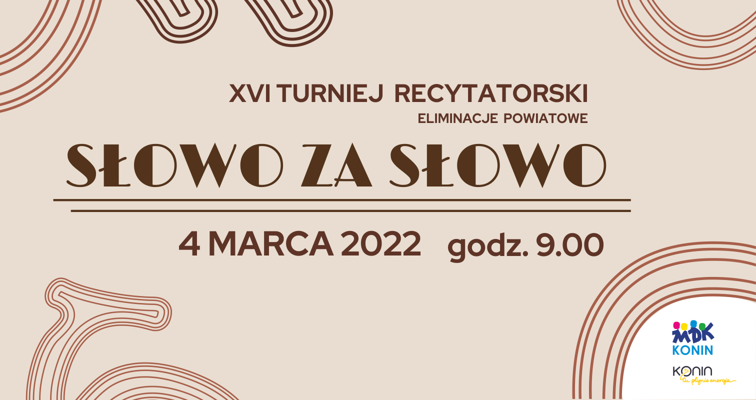 Wszystkich młodych artystów, którzy kochają poezję, którzy kochają sztukę recytacji - zapraszamy do udziału w XVI Turnieju Recytatorskim „Słowo za słowo”. Jeśli jesteś uczniem klasy VII-VIII szkoły podstawowej lub uczniem szkoły ponadpodstawowej i jesteś mieszkańcem Konina lub powiatu konińskiego – ten konkurs jest dla Ciebie. Dla laureatów przewidujemy nagrody w postaci kart podarunkowych do realizacji w salonie Empik. Szczegółowe informacje znajdziecie w regulaminie konkursu, który znajduje się w zakładce Konkursy. Zapraszamy.