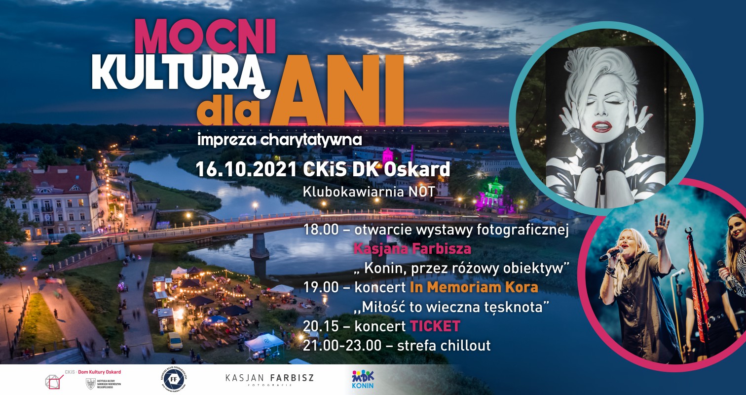 Centrum Kultury i Sztuki w Koninie, Młodzieżowy Dom Kultury w Koninie, Koniński Klub Fotograficzny Fajnych Fotografów i Kasjan Farbisz zapraszają mieszkańców Konina na wydarzenie, którego celem jest pomoc dla Ani, która jest żoną naszego klubowego kolegi z KKF FF. Chcemy pomóc jej wrócić do zdrowia i aktywnego życia .