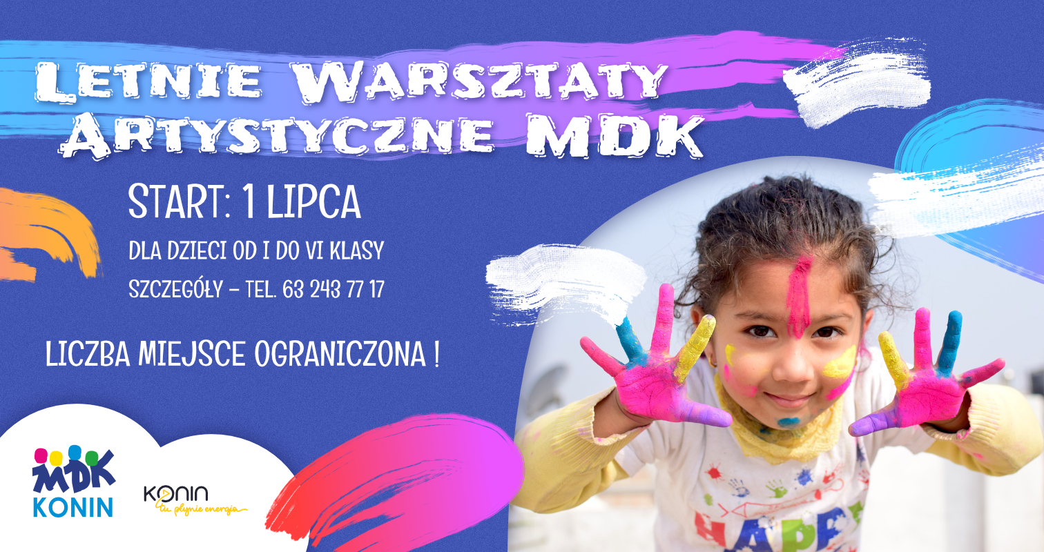Młodzieżowy Dom Kultury w Koninie prowadzi zapisy na Letnie Warsztaty Artystyczne ! Na dzieci w wieku od lat 7 do 12 czeka wiele atrakcji !